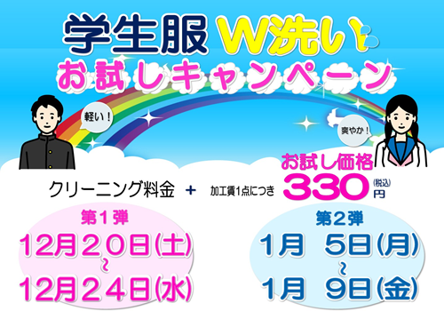 ◆休みの間に学生服もきれいにしましょう♪下記期間はキャンペーン価格にて↓