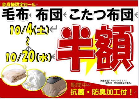 会員様限定 毛布・羽毛布団・こたつ布団半額!